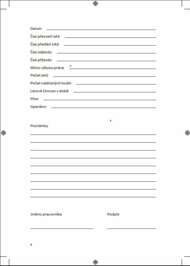 • Tištěný provozní deník k dronu, se kterým létá více pilotů